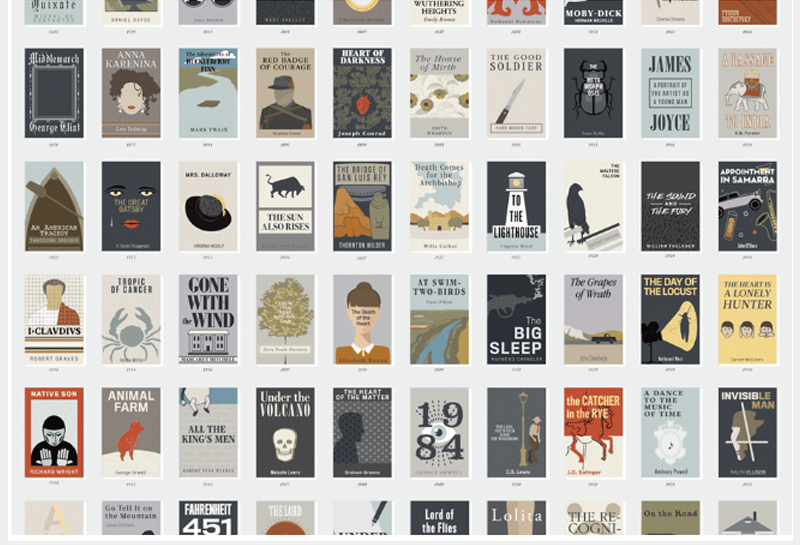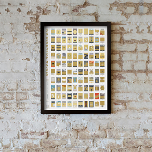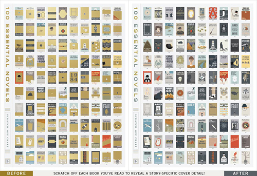 100 本必讀小說刮刮樂收集了自 1605 年到最近發行的精選小說,並用手繪風格將它一一印製於海報上。當你讀完一本經典後,你可以把金黃表層刮開,一窺隱藏的故事細節,同時象徵你的文學里程碑又向前邁出一步。