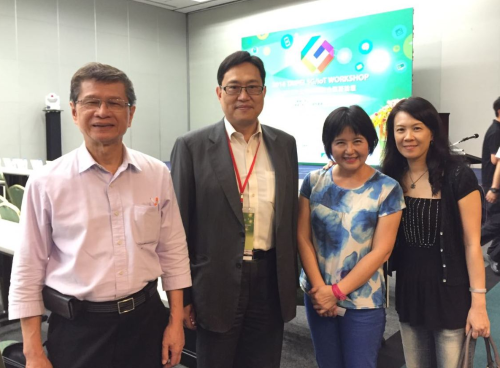 2016 台北 5G 物聯網整合國際論壇現場,左起為動腦發行人吳進生、經濟部技術處新世代通訊技術推進辦公室主任柯秀民、動腦社長王彩雲、聯合創新中心營運長劉念慈。 (Brain.com.tw/攝)