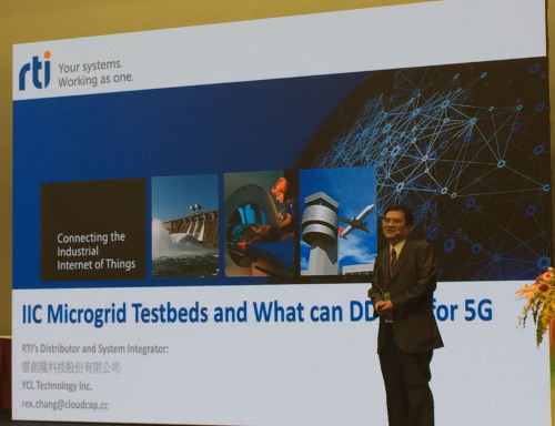 雲創隆是RTI在台灣的經銷及系統整合商,雲創隆科技的Rex,在論壇中談 IIC Microgrid測試平台和DDS(Data Distribution Service)能為5G提供哪些創新可能?(Brain.com.tw/攝)