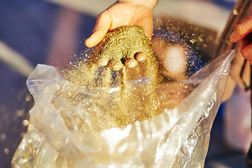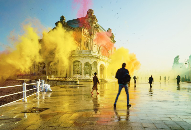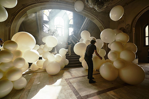 汽球內 1,500 公斤的亮粉,隨著氣球破裂的瞬間,瀰漫整個空間,甚至蔓延到賭場外,各種顏色飄散在空中,幾乎和彩色馬拉松的壯觀場景有得拼,甚至更為美麗。透過 4k 鏡頭的記錄,更令人感受到色彩的力量。