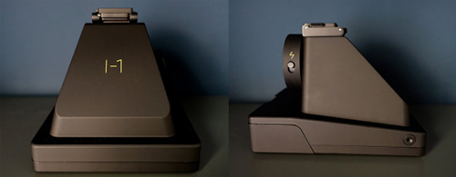 Impossible I-1 instant camera 盛裝滿滿的懷舊元素,卻擁有全新的金字塔式傾斜外型,磨砂霧面質感的黑色點亮了相機的特殊質感,擺脫舊型拍立得有點「古早」的刻板印象,這台相機融合了傳統相機跟 Instagram 即拍即傳的優點,卻又有著進化過的風格!