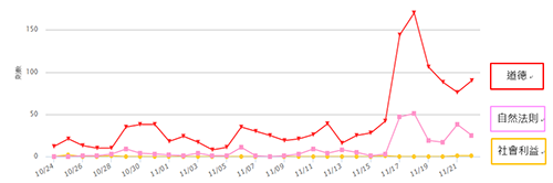 若先不談同志婚姻,只就同性戀來討論,益普索透過社群聆聽(Social Listening)發現,反對同性戀的理由不外乎是不符自然法則、違反社會利益,或是在道德價值上不能被接受等,再近一步從這些反對理由來看,發現「道德」在同志議題中的幾個反對面向中,是討論聲量最高的。