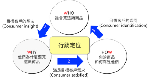 筆者的行銷金三角即是行銷的基本觀念,與B2B的經驗相較,B2C要看的是消費者需求而不是客戶給的規格要求,因為消費者不會給「規格」,B2C品牌必須要從消費市場的調查和分析中找到市場需求,同時評估自己的資源能力是否足以滿足而且超過競品,而最基本的前提,就是知道自己的「目標對象」在那裡。