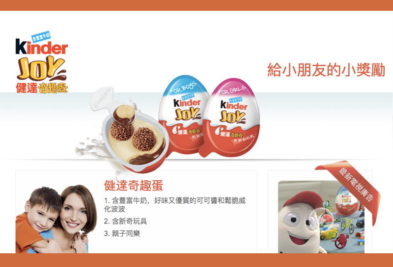 健達出奇蛋應該陪著許多人成長,一顆蛋形巧克力,裡面包著玩具,常是拿來討好小朋友的絕佳武器,因為「有吃又有拿」,而對「使用者」(小朋友)來說,玩具的驚喜又遠高於巧克力本身,因此,過往健達訴求巧克力含有豐富的牛奶成份,則是說給「購買者」(父母)聽的,就像是麥當勞兒童餐的玩具一樣,讓父母在滿足子女需求的同時,減輕自己的「罪惡感」。