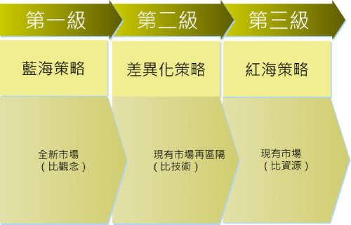 在實際的市場競爭中,即使透過STP的過程找出目標消費者,但常會碰到一種狀況,那就是自己選出來的目標消費者,與其他競品「強碰」,因為市場是大家的,有利可圖的市場自然會吸引不同的競爭者加入,如果大家的商品都同質,就只能「打混仗」,這種市場,稱做「紅海市場」;紅海市場比的是拳頭(資源),資源多的廠商,會在品牌、價格、通路等方面取得優勢而獲得消費者的青睞,如果自己的實力不足,就要針對目標對象再「研究」一下,看看是否有些目標對象的需求是市場上的商品供應者還沒滿足的,而自己的產品有實力可以切入,這種作法稱作「差異化市場」。