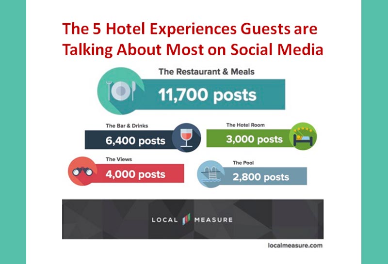 根據基於位置的旅館和旅遊業社群平台“Local Measure”的分析,客人在社群媒體上談論最多的旅館功能或服務有哪些?該平台查訪了美國、亞洲和澳大利亞等地旅館的 Facebook、Twitter 和 Instagram 的社群媒體貼文,發現客人更有可能分享旅館的食物和飲料。