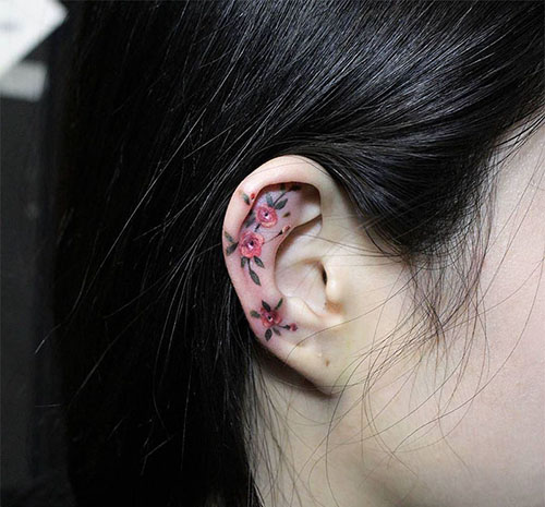 或者沿著耳朵上方的曲線,刺下藤蔓或是樹葉,繁複的紋路沿著耳後蜿蜒而上,與耳環、耳釘相互呼應;或者是走著極簡風格的線條,簡單卻又霸道地在耳朵上畫下記號,立下不容其他耳飾侵犯的標誌。