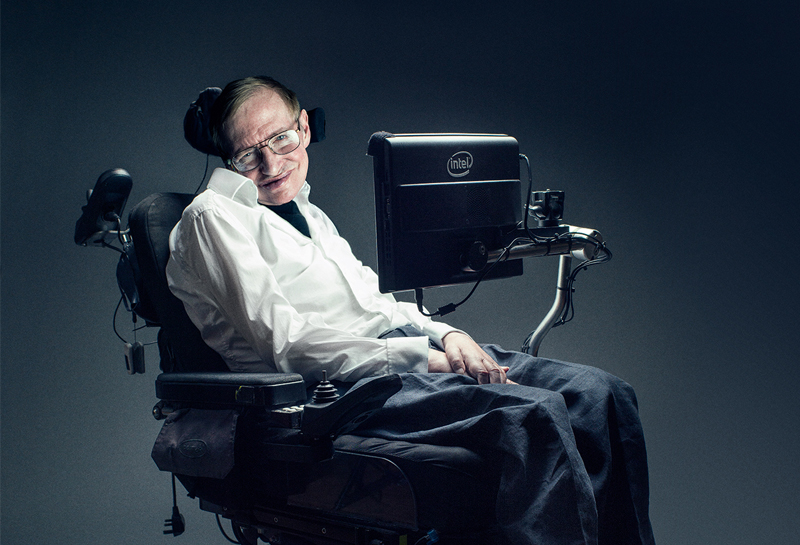 如果不熟悉誰是史蒂芬霍金,他現年 75 歲,物理學家、宇宙學家,英國劍橋大學物理宇宙研究中心主任,在學術上有相當的成就,重力奇點理論、黑洞輻射,廣義相對論與量子力學的宇宙學等,都是研究成果,讓他獲學術獎多項。他以大眾化的文字寫了一本書叫「時間簡史」(A Brief History of Time),連續暢銷達 20 年,譯成 35 種語言,銷售 1000 萬冊。他早年患漸凍人症 (ALS),經多年發展,現在僅能躺在椅子上,已經不能說話,用下額肌肉移動連接電腦發聲器,繼續講學。
