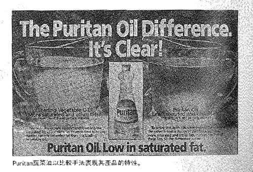 美國蔬菜油品牌Puritan透過一張平面廣告,利用實驗手法,闡述自家產品和其他品牌的差異。