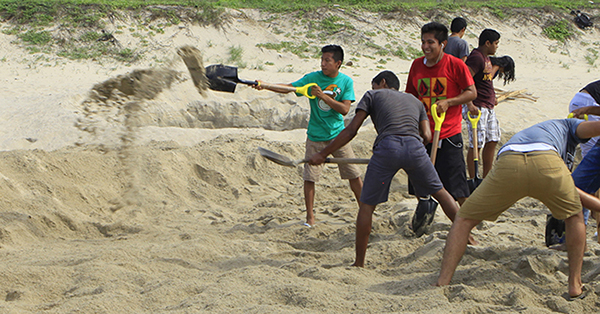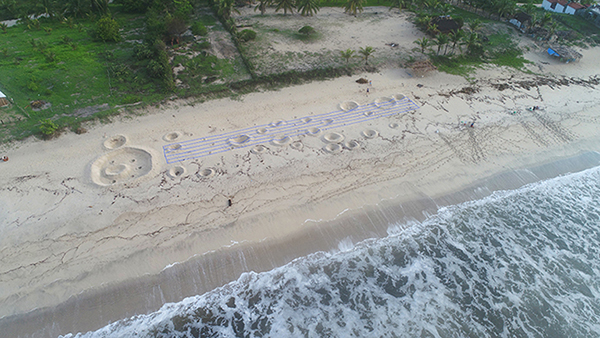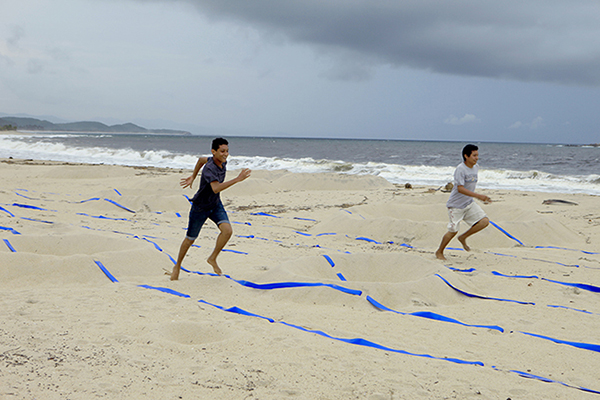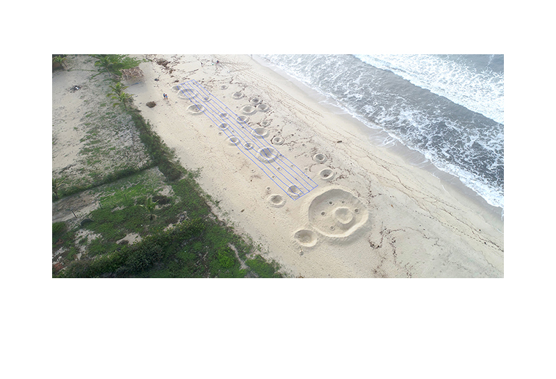 為了表達這個全世界都在面臨的挑戰,Boutruche 決定將在沙灘上最常進行的休閒運動,變成月球賽跑,一方面透過運動競賽的方式,喚起大家一同聚集在沙灘,另一方面,又能與傳統沙堡混合,重塑當地的自然景觀。