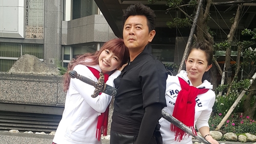 《旅行應援團》庹宗康扮鬼怪,謝忻跟邵庭扮演鬼怪新娘。(圖:衛視中文台)