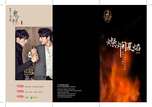 台北喜來登也在7月期間推出「燦爛的守護神.鬼怪」限定料理,以鬼怪胸前炙熱火焰的劍為概念,以火焰貫穿菜色,要情侶們如同劇中男女主角一樣,在羅曼蒂克的飯店享用牛排。