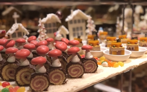雲軒西餐廳自助餐檯也換上聖誕節薑餅人、聖誕樹、紅蘑菇等色彩繽紛的造型甜點。(圖:雲朗觀光)