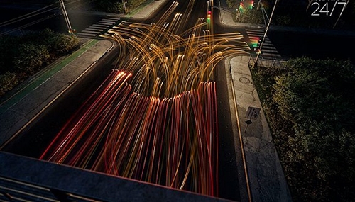 除了鮮黃色的「金拱門」商標,漢堡和薯條也逐漸成為麥當勞最具代表性的符號。利用相機的長曝光效果,麥當勞將馬路上繁忙車輛的車燈變成了他們的招牌漢堡及薯條,不僅光彩奪目,也告訴來往的司機,24小時營業的麥當勞,能隨時提供你熱騰騰的食物。