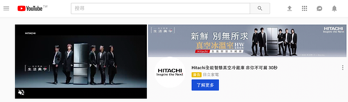 除了電視廣告外,日立家電還包下12月1日全天的Youtube首頁廣告,藉由電視和網路「舖天蓋地」的宣傳,確保消費者看到五月天代言的新日立冰箱廣告。而在Youtube影片廣告旁,也安排banner廣告導引,但卻是導引到日立Youtube頻道而非官網,有點可惜,畢竟從影片做為入口,一旦引起消費者興趣,就該導引到官網去認識商品,而非停留在影片區看其他影片。