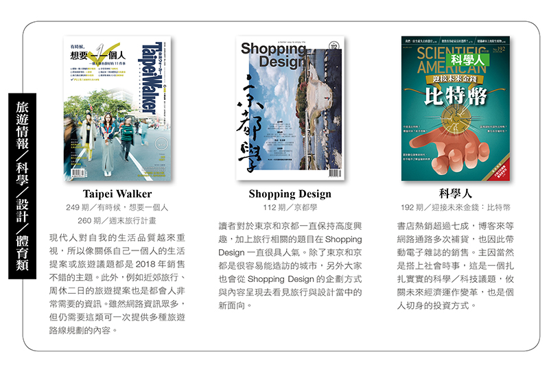 (2019年3月號515期動腦雜誌)雜誌讀者喜好,看似精準且固定,卻其實在暗處中流動洶湧。數位浪潮更加速了話題更迭頻繁,除了要時時掌握讀者喜好,同時須穩固雜誌的精緻與保存價值,並串聯線上線下,為閱聽眾及廣告主提供全方位的服務體驗,以作為分眾市場的「指標性」品牌。