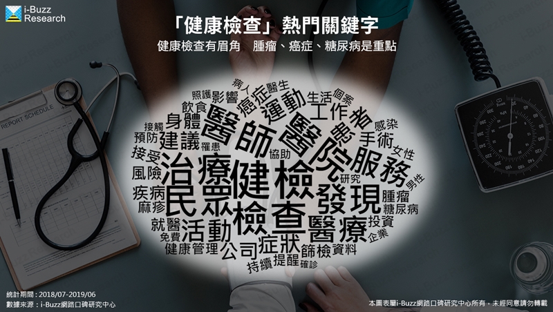 (2019-07-30)健康就是財富,現代人越來越注重健康,部分公司將健康檢查補助列入公司福利,民眾也開始願意花時間與金錢去做健康檢查,投資自己的身體健康,「提早發現,及時治療」的觀念逐漸普及,而究竟民眾都去哪裡做健康檢查,檢查的又是哪些項目呢?快跟著i-Buzz網路大數據來一探究竟!(數據期間:2018/07-2019/06)