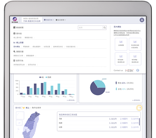 由於餅乾消失後,「數據」是領跑賽道的核心競爭力,胡洸瑞也提醒,行銷產業已經進入到另一個“戰國時代“,「很多沒有實力(真實數據)的人,都想要沾個邊、大家都想要分一杯羹」,MESh+為了讓客戶少走冤枉路,便在兩年前與中華電信合作,研發SKYLENS數據應用平台,以中華電信1100萬的行動用戶為基礎,協助客戶以「真實數據」精準定位目標客群,帶動營收成長的動能。