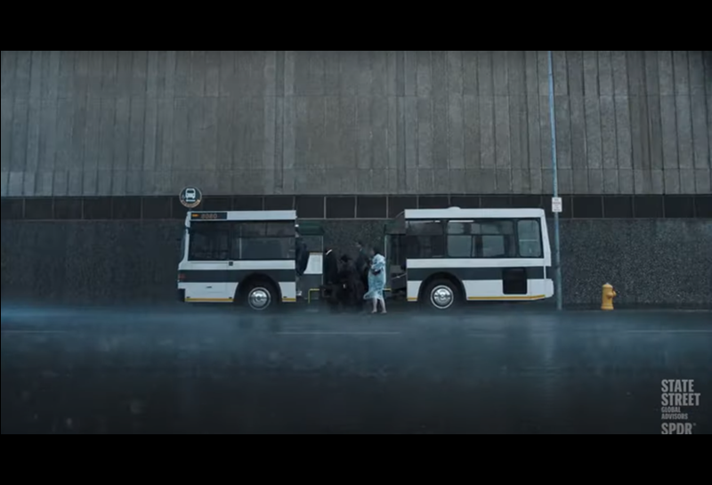 (2022-04-28)道富環球顧問公司18日公開《Mid Caps Can Make All the Difference》(中型股能發揮重大作用)30秒廣告,小小的公車站正發生著一些怪異現象。老奶奶撐著破著大洞的傘,在雨中盯著簍空的公車時刻牌,顯得相當懊惱;一位男子抬起手臂想從手錶確認時間,卻發現中央錶面空無一物;走向公車站女主人遛著少了中段身體的臘腸狗;就連公車站旁的牙刷廣告模特兒口腔都少了門牙。
