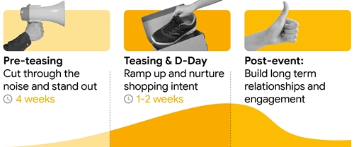 掌握了消費者洞察,下一步,該如何規劃進攻時程?Google 將購物季行銷時程分為三大階段,提醒品牌應當制定不同時期的媒體策略: