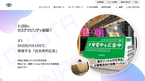 TOYOTA運用自家汽車塗裝技術,開發貼在太陽能板上的彩色薄膜,嘗試達到在無損街道的景觀下,進行太陽能發電的可能。
