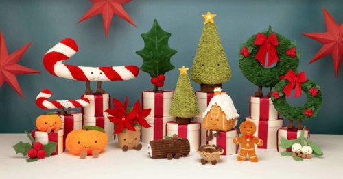 世界上最柔軟的玩具品牌Jellycat最新耶誕家族萌翻全場。(圖片來源:誠品書店)