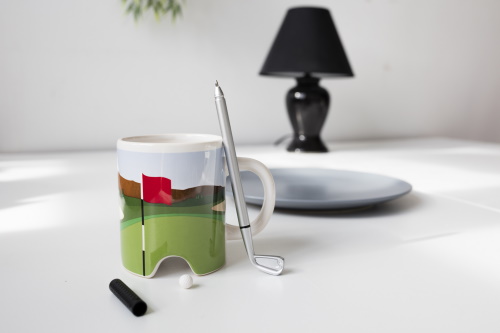 美國 KIKKERLAND 桌面高爾夫兩用馬克杯,可盛裝飲品也可當作筆筒。(圖片來源:誠品書店)