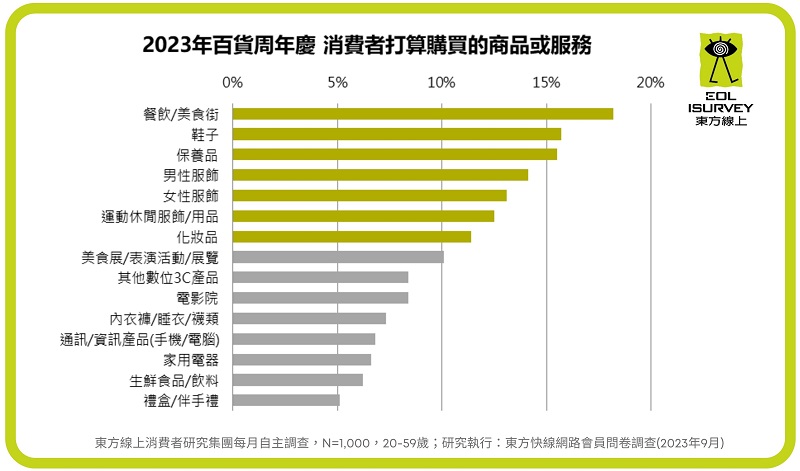 (2023-10-17)百貨週年慶是每年最受矚目的消費戰場,東方線上消費者研究集團公布2023「百貨周年慶消費商機調查」。