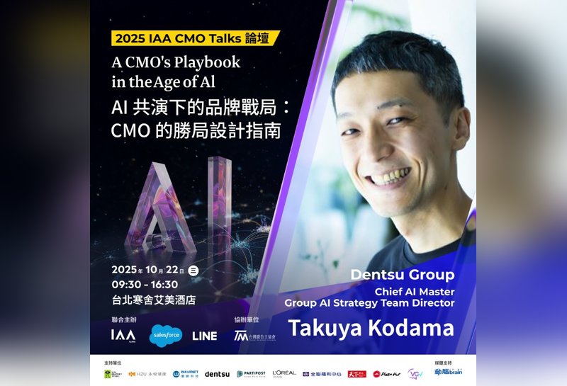 第三屆【2025 IAA CMO Talks論壇】將於10/22 (三)假台北寒舍艾美酒店登場,以「AI共演下的品牌戰局:CMO的勝局設計指南」為主題,IAA 攜手Salesforce以及LINE聯合主辦、TAA台灣廣告主協會協辦,並廣邀零售、美妝、汽車、出版、健康與行銷科技領域的國內外資深CMO專家同場交流,一日濃縮全球趨勢 × 在地實戰;並於論壇當日首度發表「2025 CMO大調查白皮書」,歡迎報名與會。