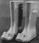 綠色青蛙雨鞋,造型有新意,引起小朋友搶購,市面上供不應求。尺吋為15~24㎝﹐定價3,500~3,700日幣。