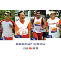 ING集團是世界前三大金融集團之一﹐在亞洲金融風暴和全球網路泡沫化的那幾年﹐不斷購併﹑迅速崛起。業績站穩腳步後﹐希望對社會多一些關懷與貢獻﹐又覺得壽險業與健康息息相關﹐最後決定挑一種運動來贊助。中選的幸運兒是馬拉松﹐因為它是最適合全民的健康運動﹐而且歐美可接受﹐亞洲不排斥。