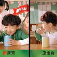 為了突顯「新升級」,廣告中還特別拿了「原」康寶來跟「新」康寶比較,畫面中顯示喝新康寶的小朋友比較受歡迎。但為了展現新商品的好,拿舊商品當做比較,是否是恰當的表現方式?